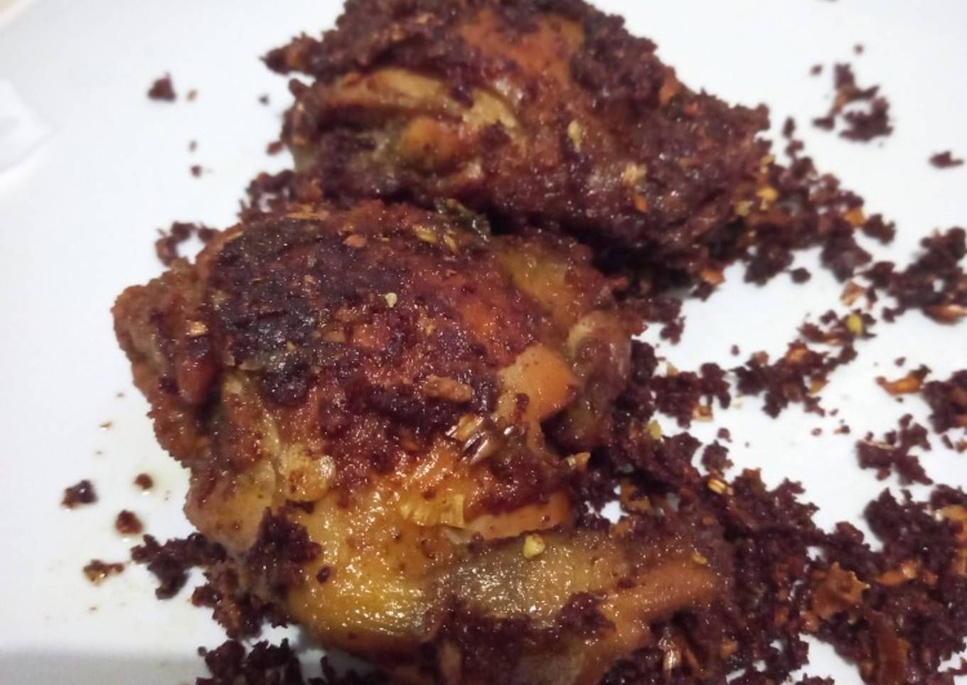 - Aduk sesekali, sambil masukan potongan sereh yang sudah di iris tipis. Masak dengan api sedang sampai air benar benar surut dan ayam mulai kecoklatan.