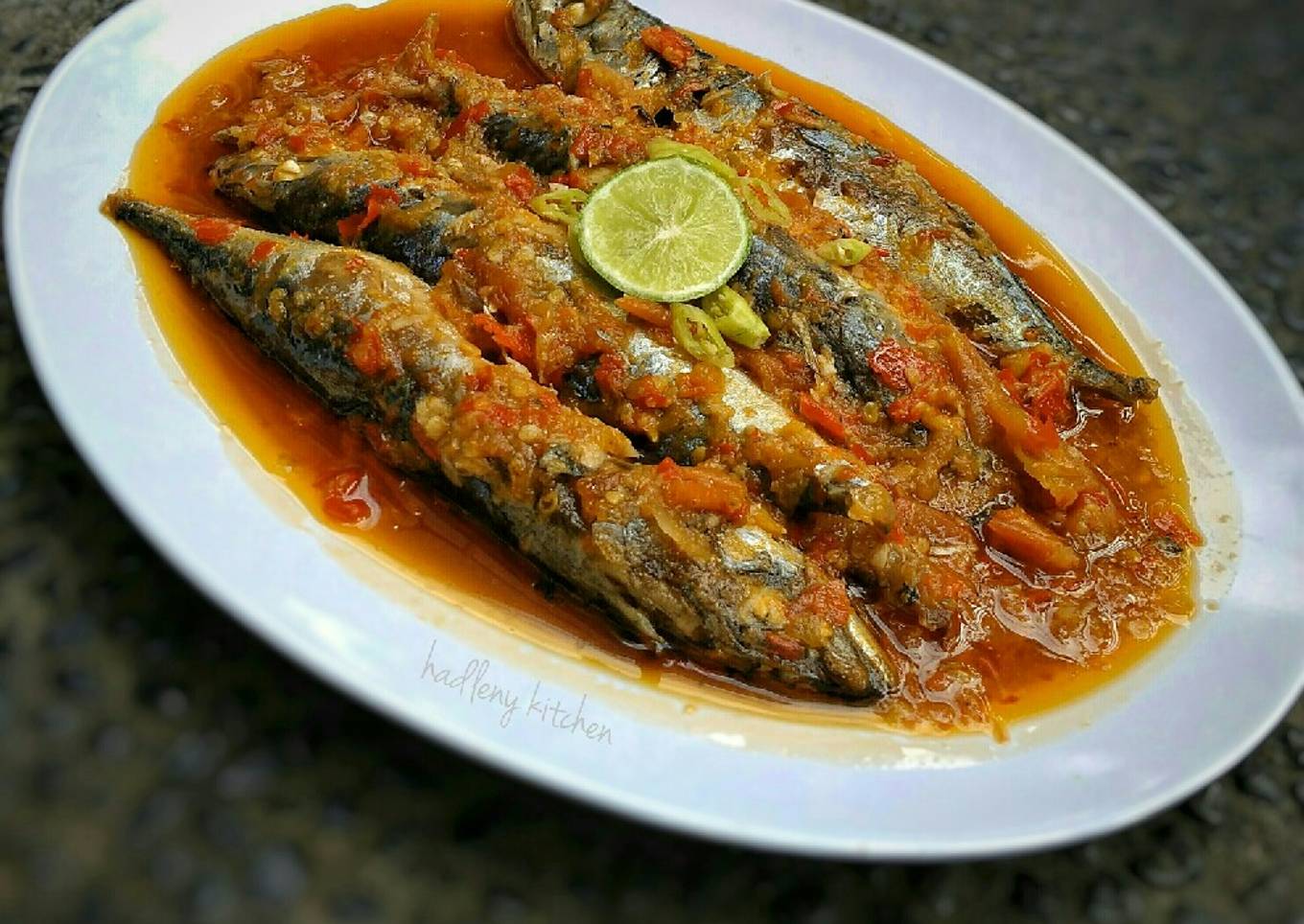- Masukkan pindang deles lalu tuang air dan air perasan jeruk nipis. Beri garam & gula pasir. Masak hingga bumbu mengental & meresap. Koreksi rasa