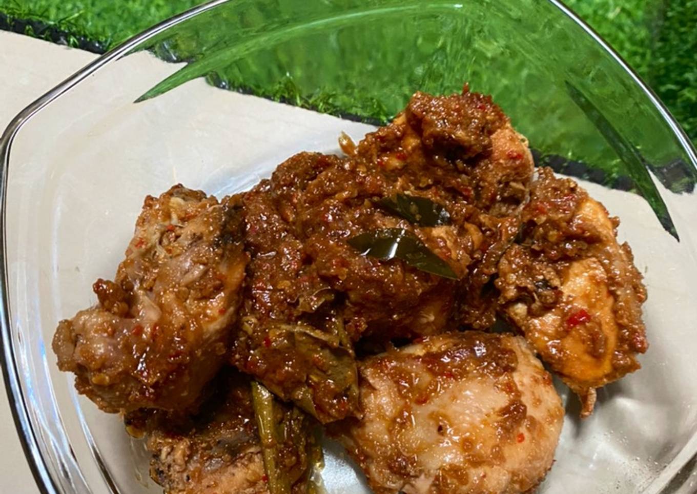 - Masukkan potongan ayam. Masak hingga air menyusut dan ayam empuk. Koreksi rasa, sajikan.