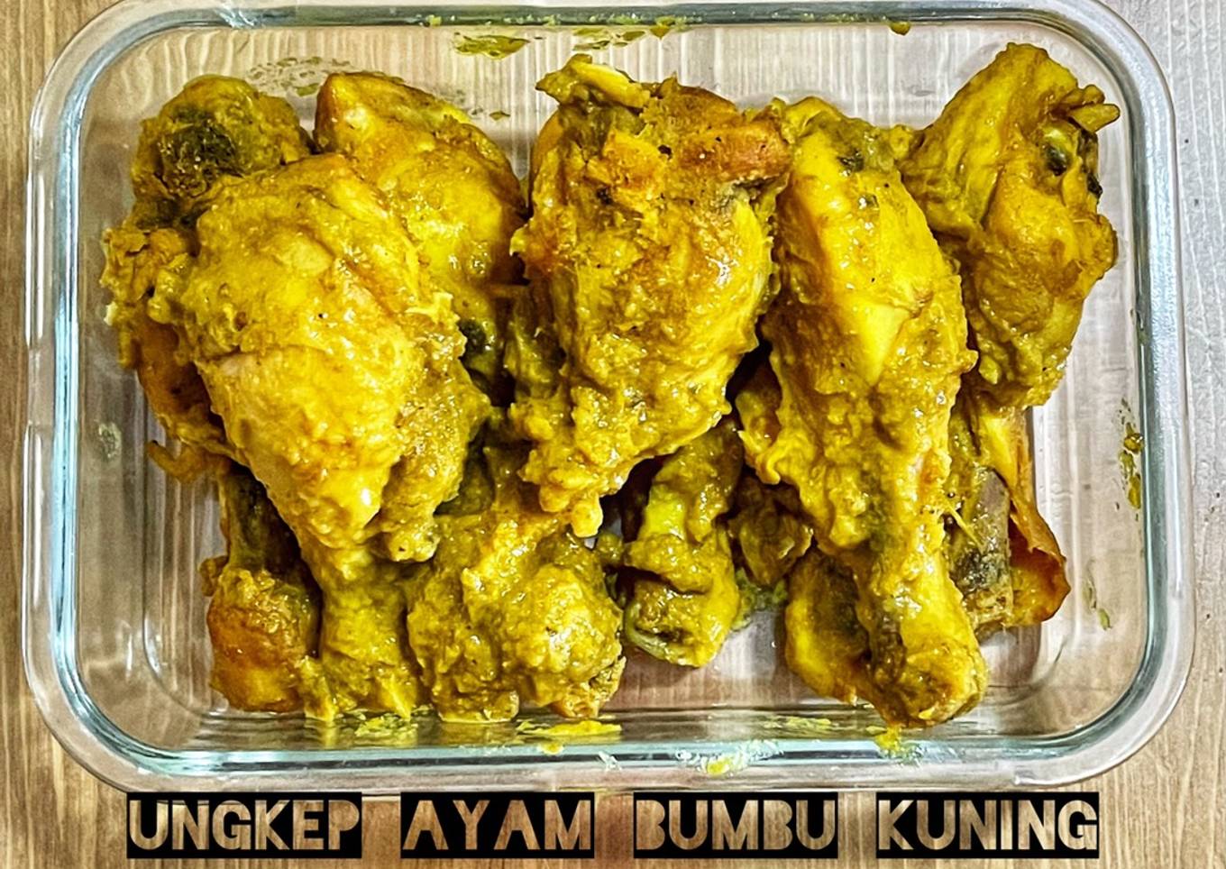 Bahan-bahan dan bumbu yang digunakan dalam menyiapkan Ungkep Ayam Bumbu Kuning meresap: