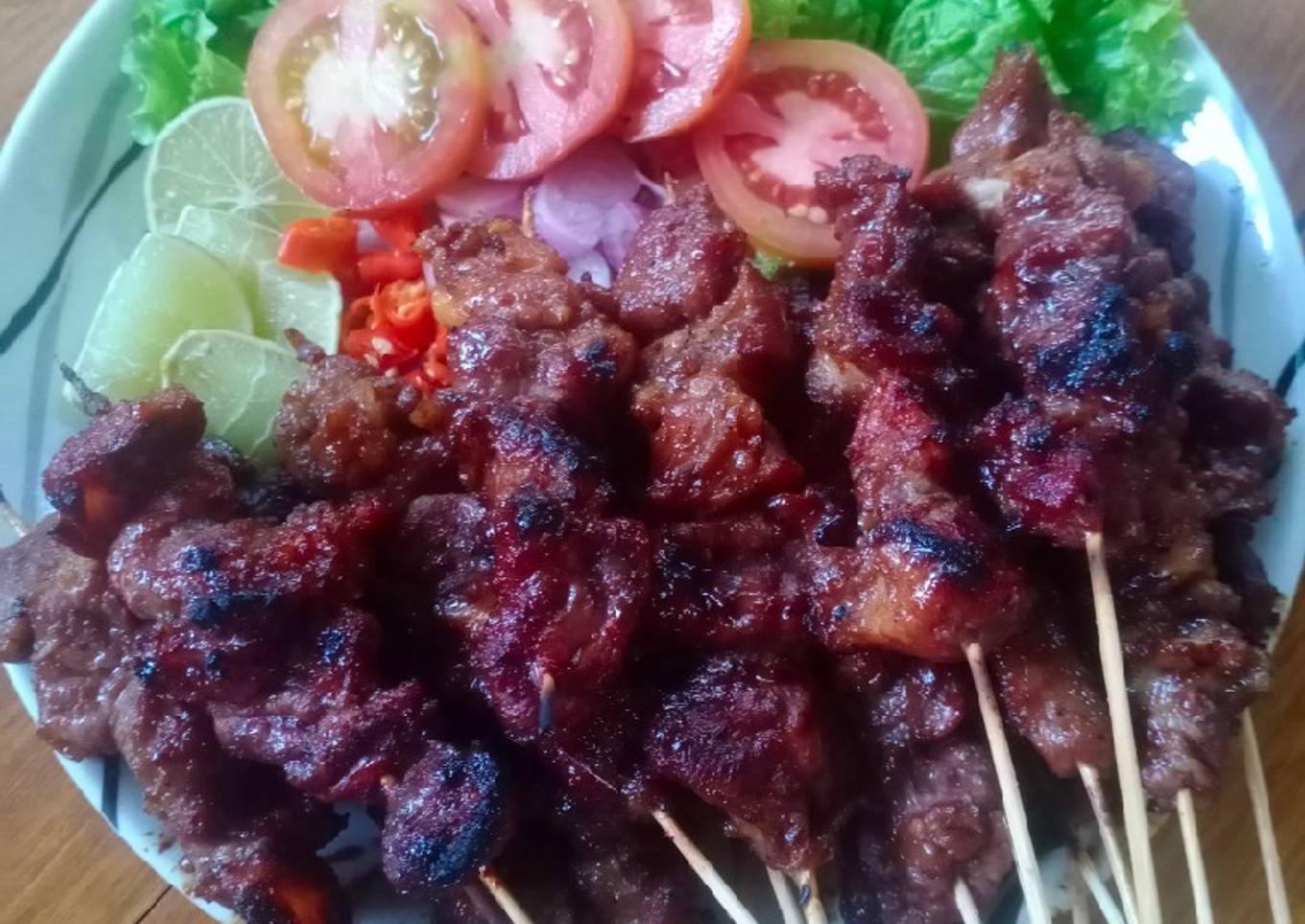 - Bakar sate sambil sesekali dicelupkan/diolesi bumbu kecap. Bakar hingga kering dan matang