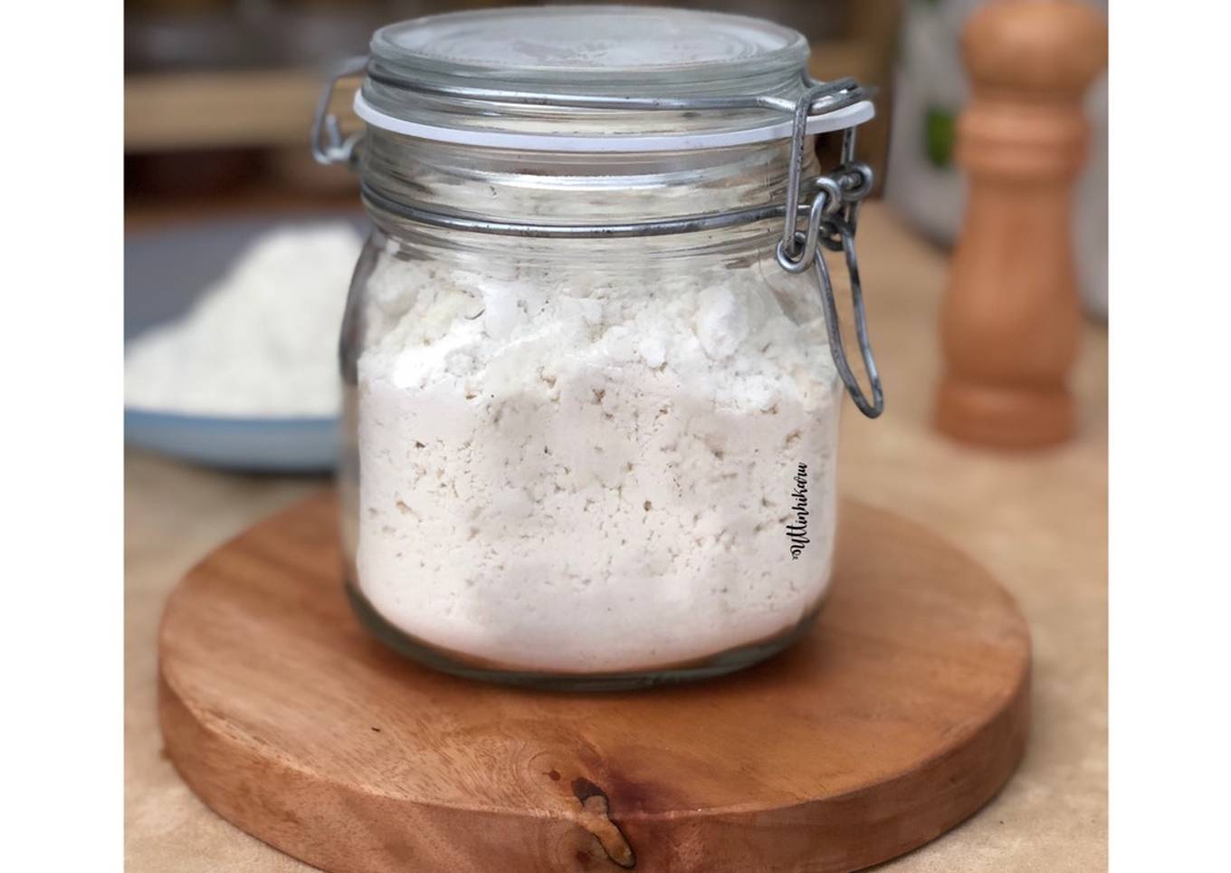 - Campur semua bahan, aduk rata, pakai whisk. Boleh juga dikocok dalam stoples (jangan lupa tutup rapat stoplesnya)