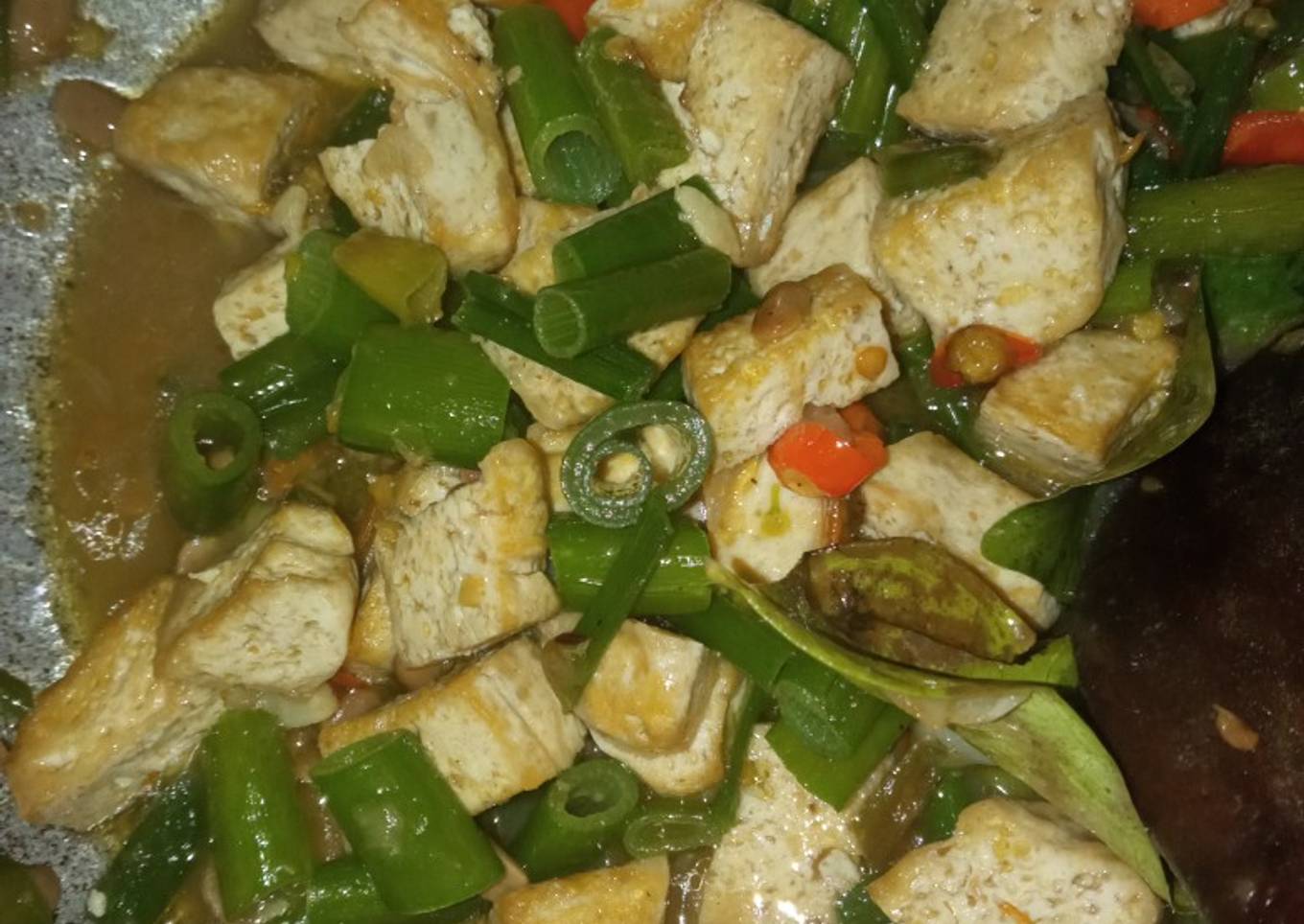 - Setelah harum masukan tahu dan tauco beri air secukupnya aduk sampai rata