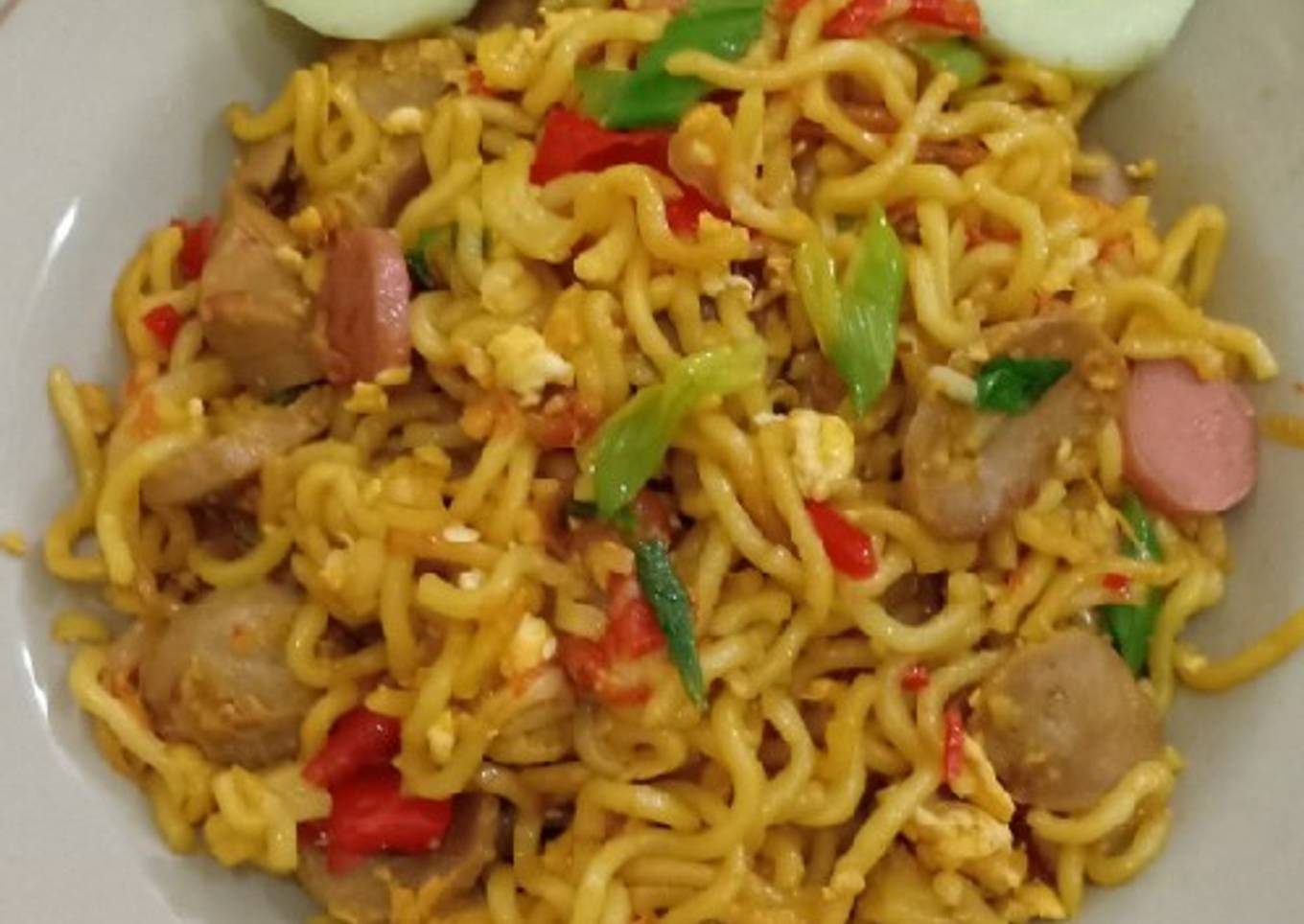 - Setelah rasanya sudah sesuai, sajikan mie goreng dengan potongan ketimun.