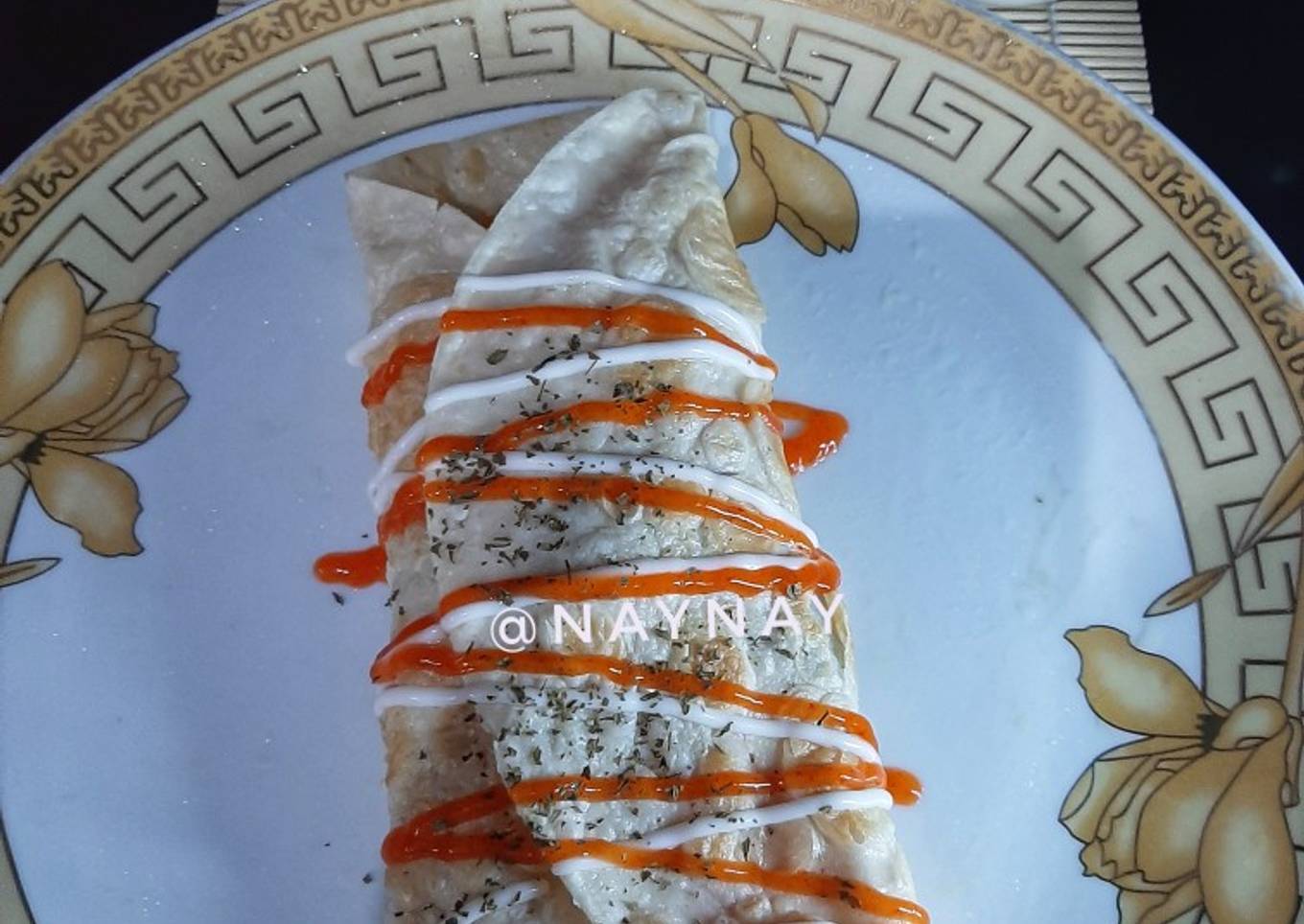 - Oleskan pan dengan margarin tipis tipis aja; oleskan kulit tortilla juga dengan margarin tipis-tipis aja. Panggang diatas pan tadi dengan api kecil kurang lebih 1 atau 2 menit sambil dibolak balik.