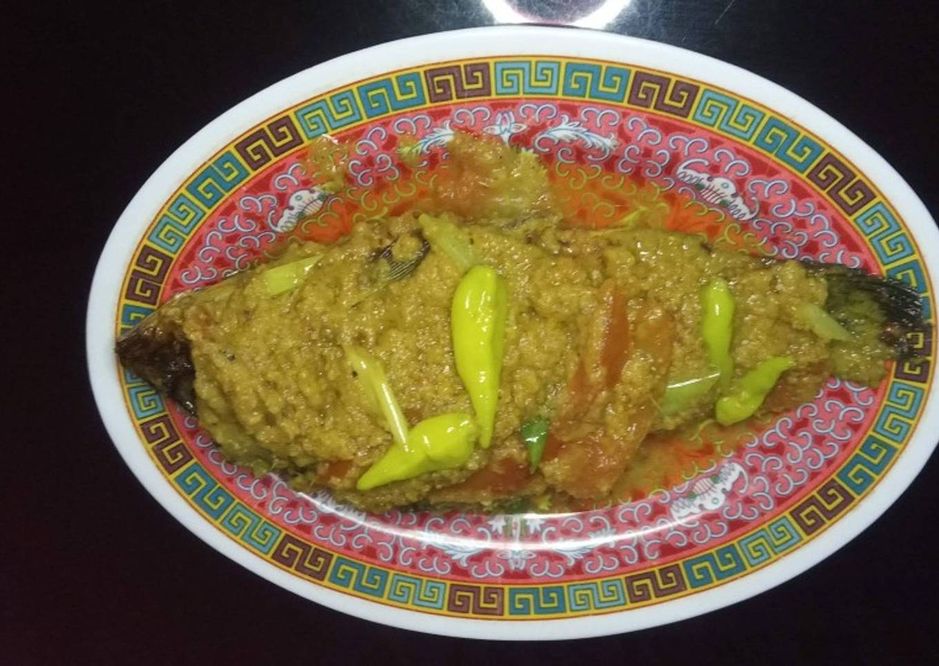 - Berikan sedikit air lalu beri garam, lada bubuk, penyedap dan gula pasir baru mekudian masukan Ikan nya, masak hingga Bumbu meresap. Angkat. Sajikan